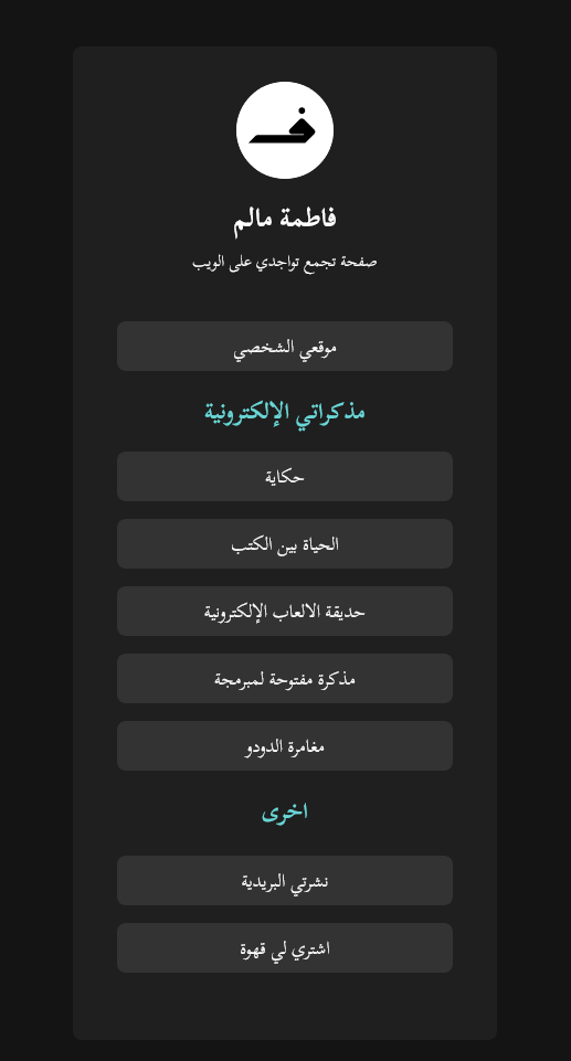 لم ابدأ بعد في تعلم الـCss بعد -كسل- ولكنني مررت بفيديو على اليوتيوب لمشروع إنشاء صفحة الروابط الإجتماعية. وبدى لي سهلًا جدًا, وقررت إنشائه متتبعة الخطوات في الفيديو. وفي الحقيقة سعدت بالنتيجة.